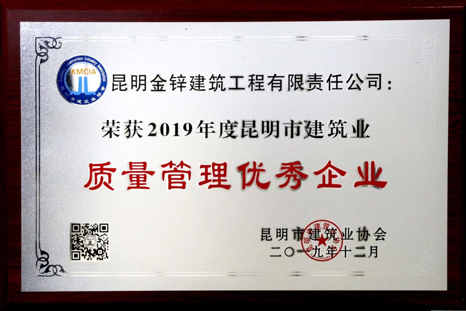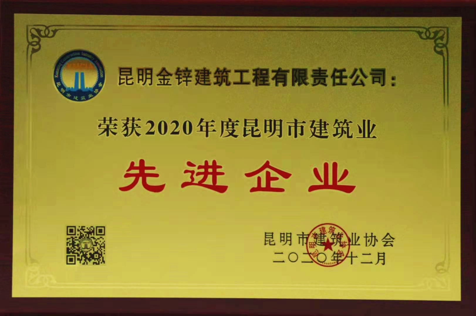 2020昆明市建筑業先進企業