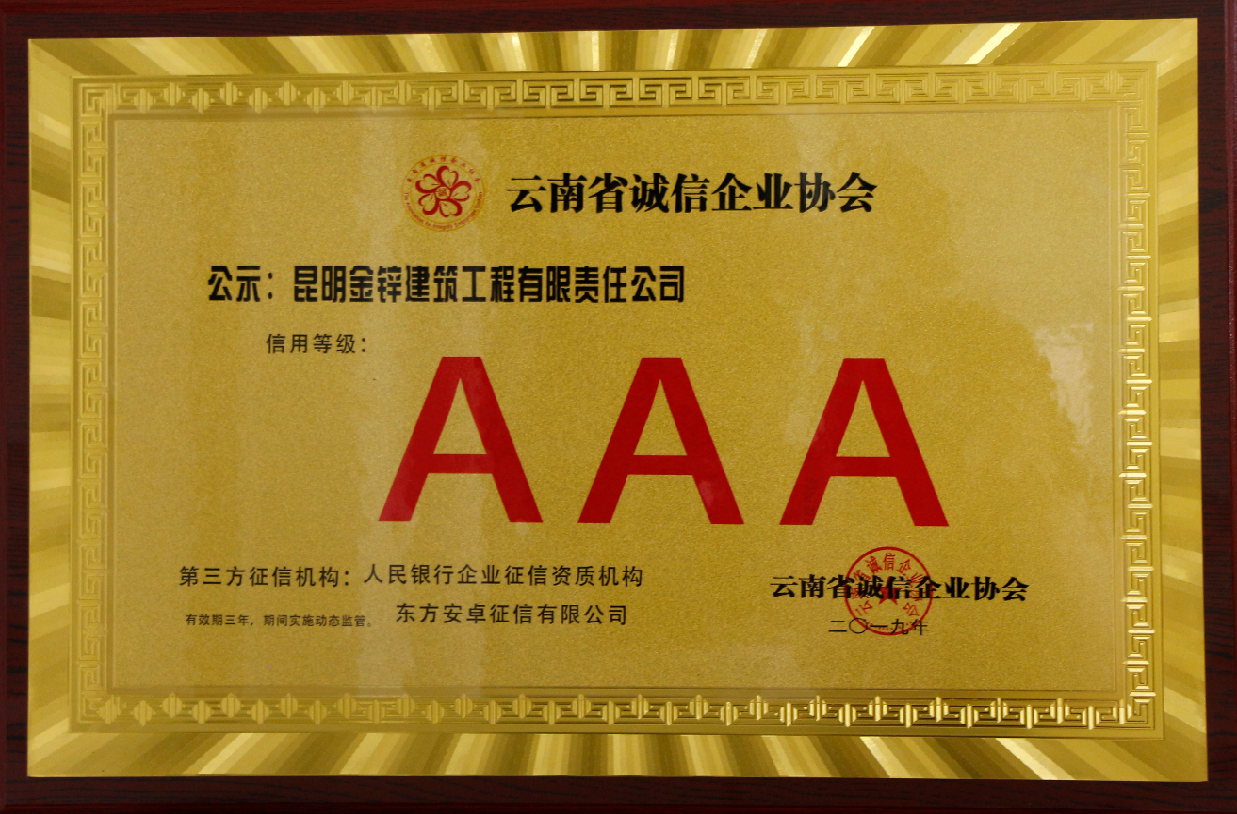 2019云南省AAA信用企業